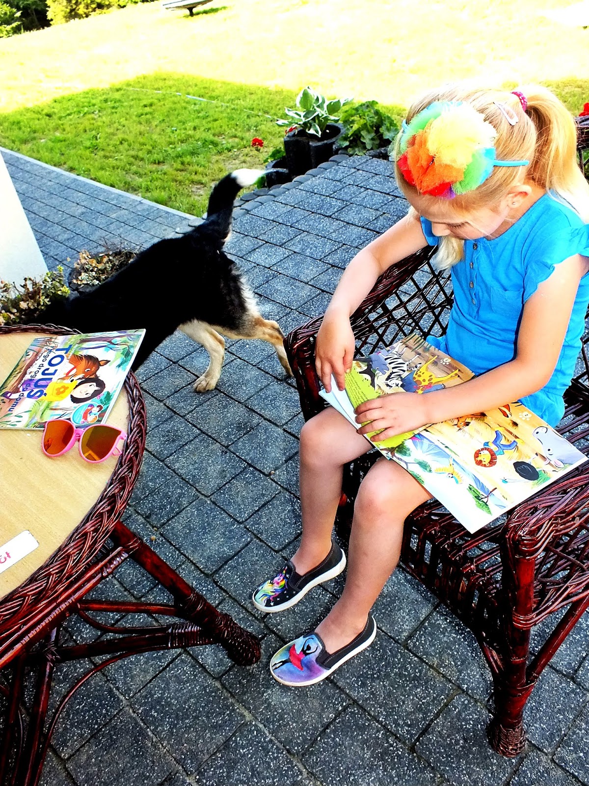 Pierwszy dzień wakacji przywitał nas kroplami deszczu ale spacer z pupilem zaliczony. Po takim poranku blondyneczka schowała się pod koc z książkami i czyta.